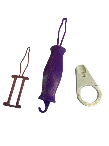 This set of lightweight, 3D-printed dressing aids includes zipper pullers and button hooks that provide an extended grip and improved control. The tools reduce the need for precise finger movements, allowing users to manage clothing tasks more independently and confidently in their daily routines.